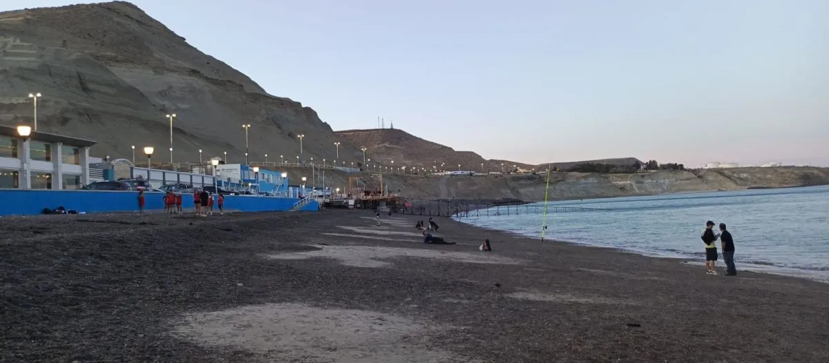 En este lunes por la tarde noche, muchas familias disfrutaban de la playa por la buena temperatura. Mucho más disfrutaban del mar los pescadores que esperaban el pique en la costanera tirando la línea para pescar algún pez gallo o róbalo.