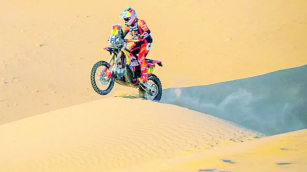 El piloto argentino de KTM oficial número 77 dominó el tramo en Wadi ad-Dawasir, recorriendo 483 kilómetros de velocidad cronometrada y 238 de enlace, pese a la dificultad de abrir camino en el desierto.