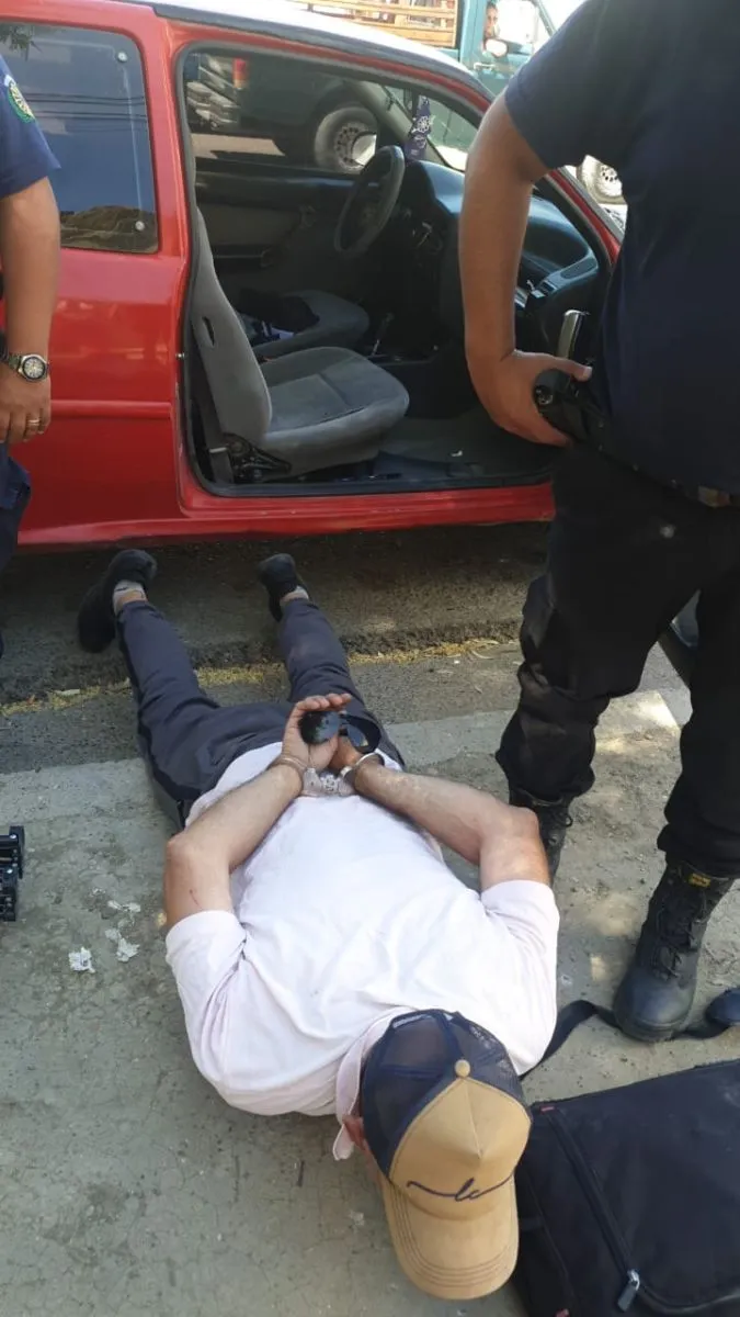 El hecho ocurrió en la avenida Yrigoyen frente al Hospital Regional, en donde personal policial advirtió una pelea en la calle y al intervenir para separarlos, un ciudadano se aproximó a los agentes refiriendo que un sujeto se encontraba dentro de su vehículo un Volkswagen Gol estacionado.