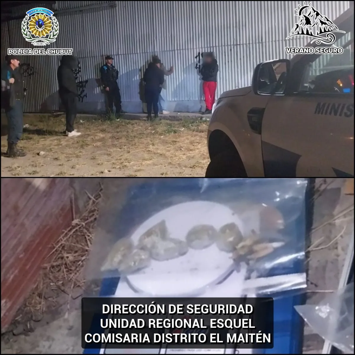 Personal de la Comisaría Distrito El Maitén detectó a dos mujeres que transportaban diversas sustancias estupefacientes durante un operativo de identificación de personas realizado en el Predio Ferial del Tren a Vapor. El hecho ocurrió el jueves, alrededor de las 23:40 horas, cuando las sospechosas intentaron evadir la presencia policial.