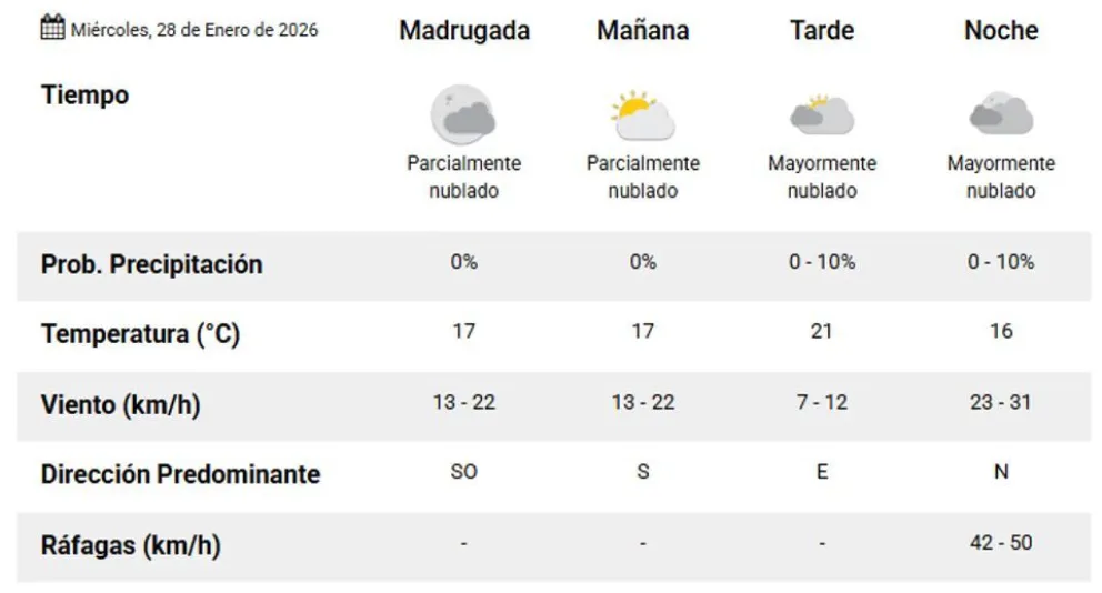 De acuerdo con el pronóstico emitido por el Servicio Meteorológico Nacional (SMN), para este miércoles 28 de enero se espera una jornada con temperaturas moderadas en Comodoro y Rada Tilly.