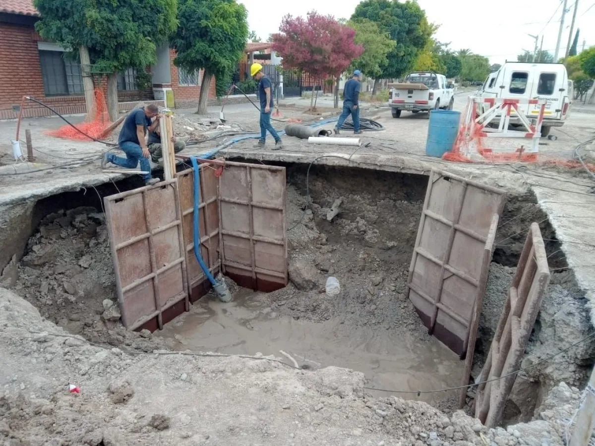 En paralelo, continúan los trabajos de reparación de la impulsión cloacal. Actualmente, se lleva adelante una depresión de la napa freática mediante perforaciones de hasta 8 metros de profundidad, con siete bombas funcionando de manera continua desde el mediodía del lunes. Esta tarea es fundamental para disminuir los niveles de agua del terreno y permitir el acceso completo al caño de impulsión, ubicado a aproximadamente 5 metros de profundidad, condición necesaria para realizar la reparación de forma segura y eficiente.
