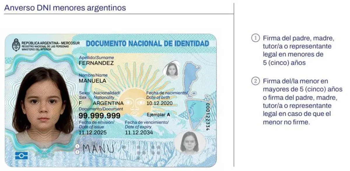 El nuevo esquema alcanza a ciudadanos argentinos y extranjeros por igual. Los menores de 14 años recibirán documentos con las mismas características de seguridad que los adultos, mientras que en el caso de niños menores de cinco años se incluirá la firma del padre, madre o tutor legal. Para los extranjeros residentes, el DNI mantendrá idéntico formato y estándares que el documento argentino, consolidando un sistema unificado de identificación.