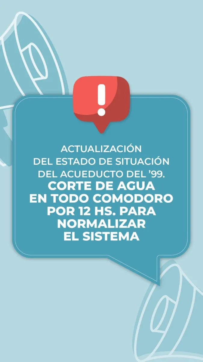 Corte de agua de 12 horas en todo Comodoro para normalizar reservas