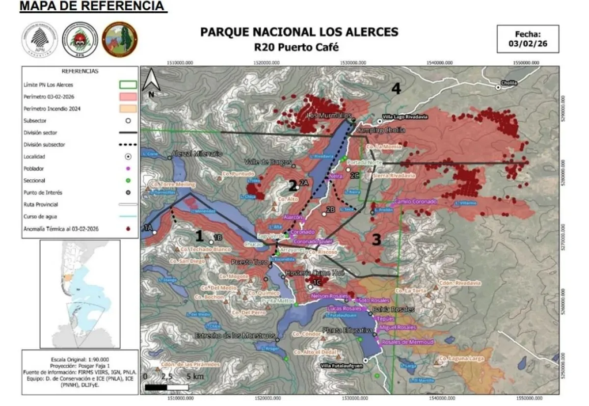 El incendio forestal que afecta al Parque Nacional Los Alerces transita una etapa de actividad moderada luego de las leves precipitaciones registradas en las últimas 24 horas. Según el reporte oficial del Comando Unificado emitido este martes, las condiciones meteorológicas actuales permiten prever un comportamiento del fuego con un moderado potencial de avance, lo que facilita las tareas de las cuadrillas en el terreno.
