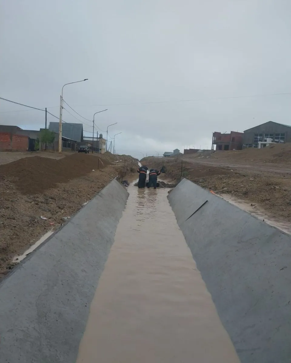 Otra intervención tuvo lugar en 10 de Junio y Río Gallegos, donde se constató el ingreso de agua a una vivienda. Allí se colocaron bolsas de arena como medida preventiva y se procedió a la limpieza de un desagote pluvial ubicado en la vereda, que se encontraba obstruido por piedras. Posteriormente, el cuartel tomó conocimiento de calles inundadas en el Barrio 330, por lo que se amplió el operativo con tareas de limpieza de alcantarillas y conductos pluviales, en un trabajo conjunto con personal de Protección Civil.