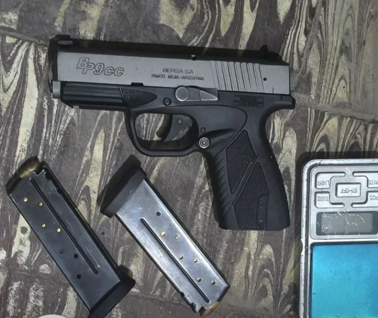 Durante las diligencias, los efectivos procedieron al secuestro de una pistola Bersa calibre 9x19 mm. El armamento contaba con dos cargadores completos con municiones del mismo calibre. Además, se incautaron dos teléfonos celulares de interés para la pesquisa.