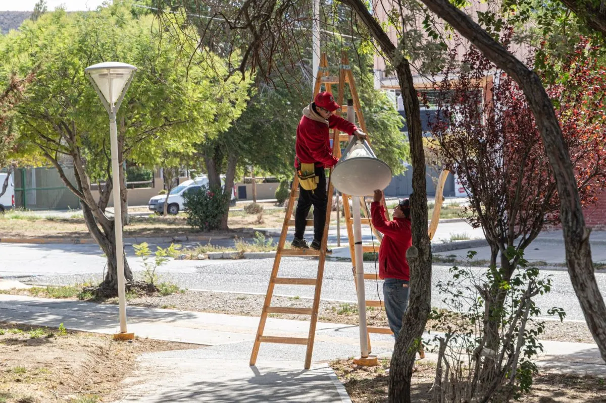 En este caso, los trabajos consisten en la renovación del sistema de iluminación de la plaza Carlos Gardel, emplazada en las calles Santa Cruz y Santiago del Estero, en el barrio 9 de Julio. Allí, se sustituyeron 18 luminarias LED, a lo que se agregan tareas de limpieza, pintura y mantenimiento general del espacio.