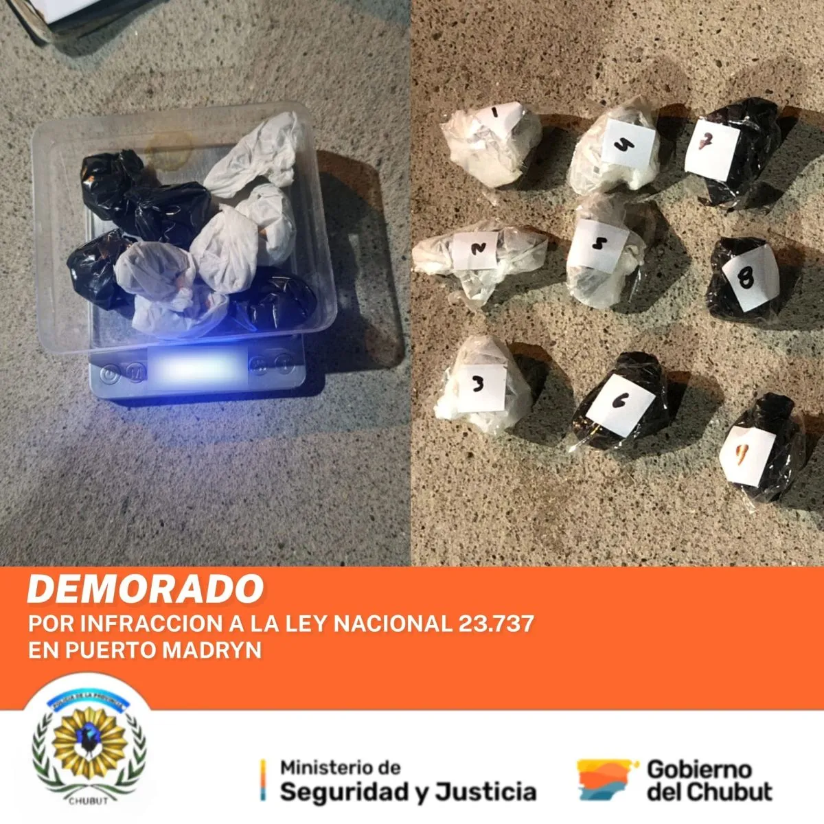 Las actuaciones fueron comunicadas a la fiscal Sara Vidal. La funcionaria judicial dispuso el secuestro de los teléfonos celulares del involucrado, que fueron entregados de forma voluntaria, y el pesaje definitivo de la droga en el marco de la investigación iniciada.