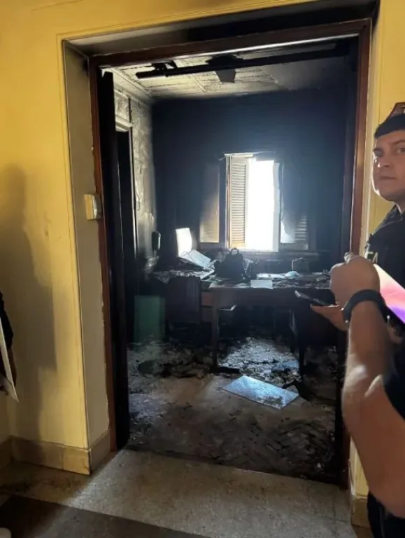 El fuego destruyó el despacho de la senadora chubutense Andrea Cristina y dejó seis intoxicados por humo