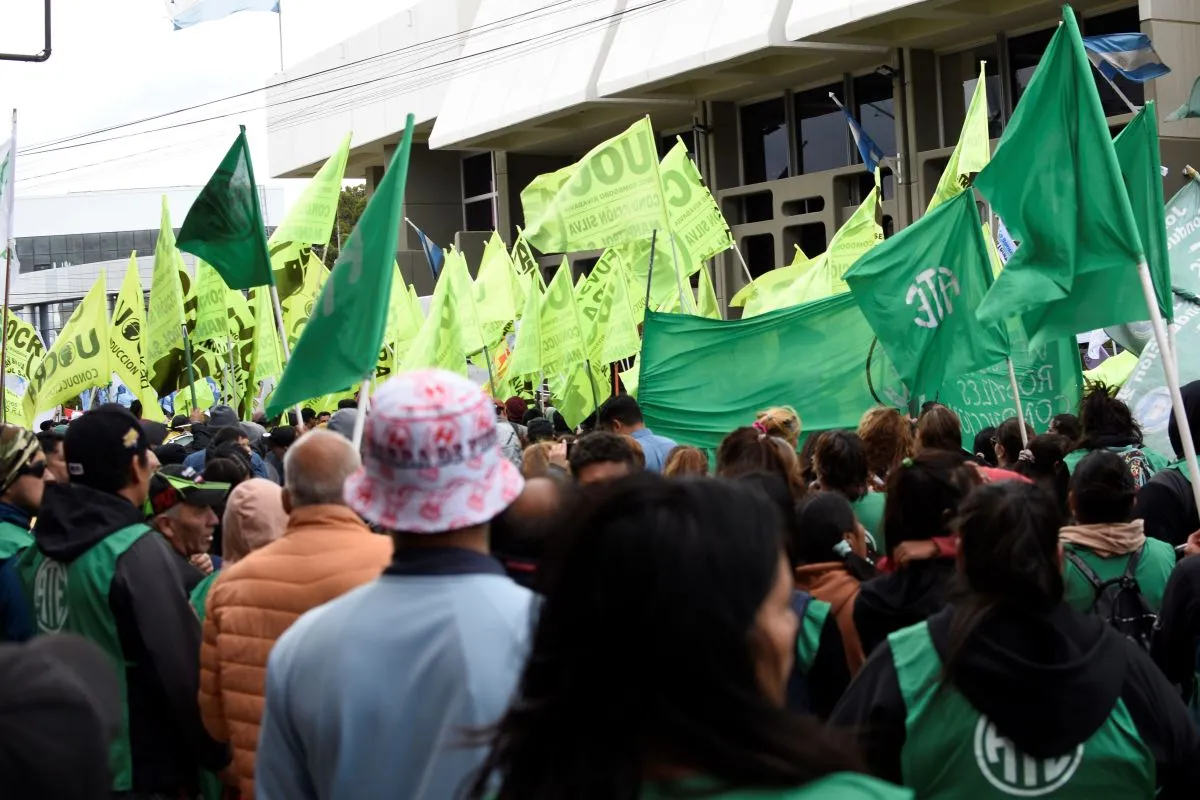 La movilización fue convocada por la CGT y las CTA, con fuerte presencia de los sectores de Camioneros Petroleros Privados y UOCRA, en una jornada que combinó críticas al Gobierno Nacional, advertencias políticas y preocupación por la crisis de la cuenca del Golfo San Jorge.