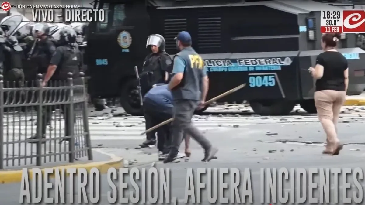 Por su parte, las fuerzas de seguridad respondieron al avance utilizando camiones hidrantes y disparos de balas de goma para dispersar a la multitud en Plaza Congreso.