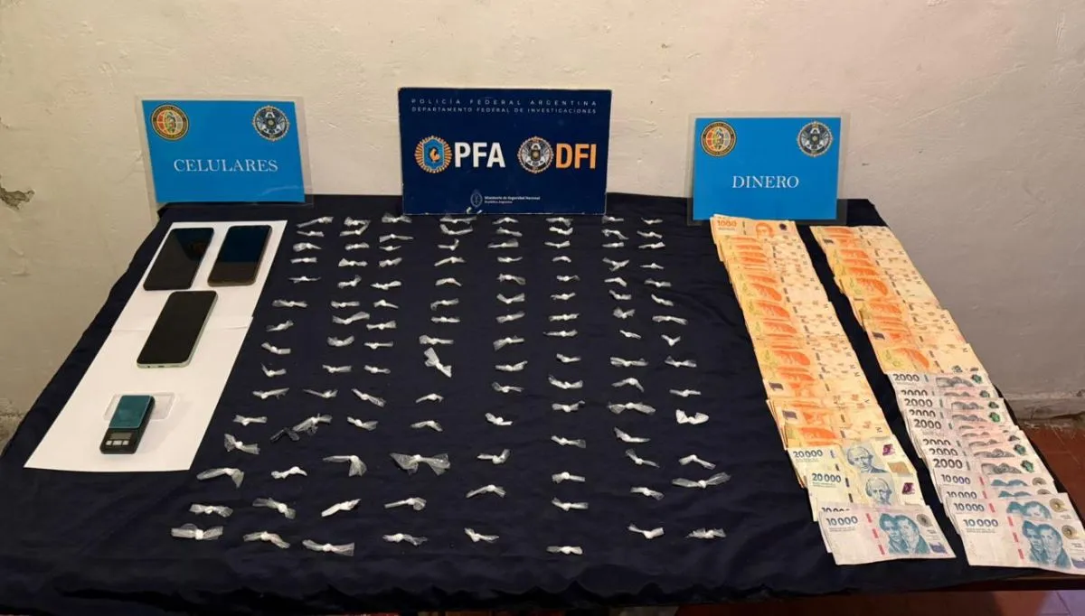 Durante el procedimiento, los efectivos lograron incautar 121 envoltorios de clorhidrato de cocaína, más de 200.000 pesos en efectivo, una balanza de precisión y tres teléfonos celulares.
