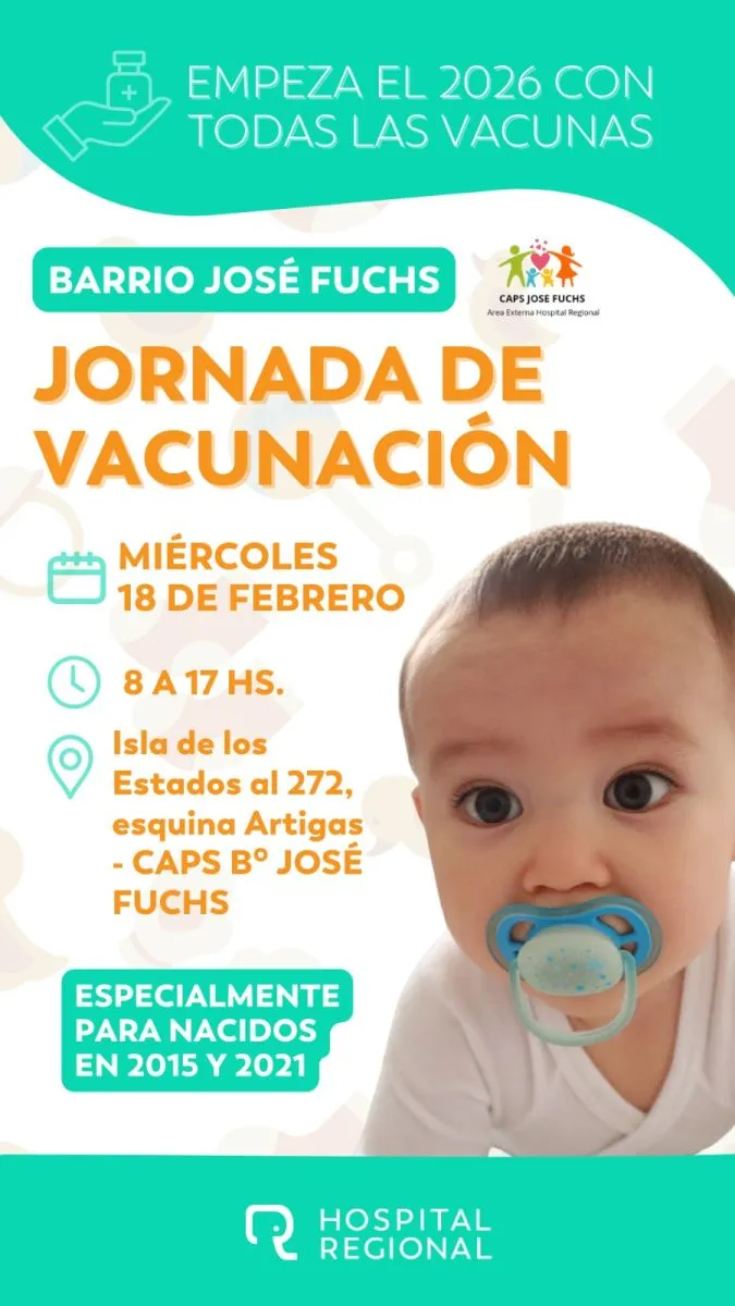 En el marco del inicio de las clases y para completar el esquema de vacunación, habrá una jornada para vacunar a los más chicos, organizada por el Hospital Regional. La jornada está orientada especialmente a los nacidos entre 2015 y 2021, pero es abierta.