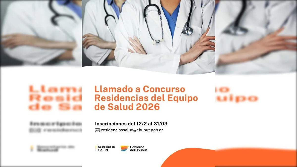 El Gobierno del Chubut, a través de la Secretaría de Salud, convoca a médicos y otros profesionales de la salud de todo el país a participar del Concurso para cubrir los cargos disponibles en las “Residencias del Equipo de Salud de Chubut 2026”, cuyas inscripciones abrieron el 12 de febrero y se extenderán hasta el 31 de marzo próximo.