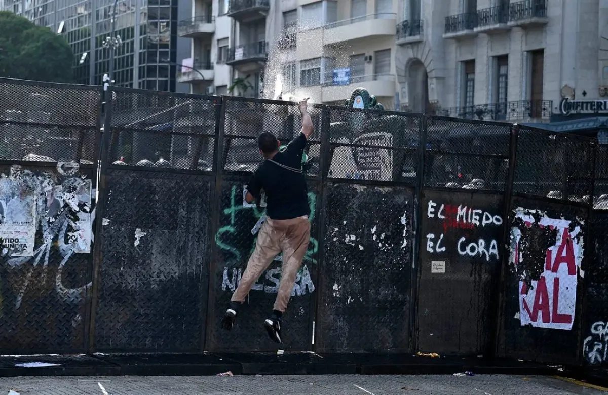La Policía utilizó camiones hidrantes para dispersar la protesta en las afueras del Congreso