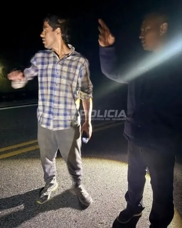 Los efectivos desplegaron un patrullaje preventivo y tareas de rastrillaje sobre la Ruta Nacional 237, extendiendo la búsqueda hasta el sector de Confluencia, en la intersección con la Ruta Provincial 65. Cerca de las 3:00, a la altura del kilómetro 1607, divisaron una luz en un sector elevado, lo que permitió orientar el operativo y avanzar a pie hacia el lugar.