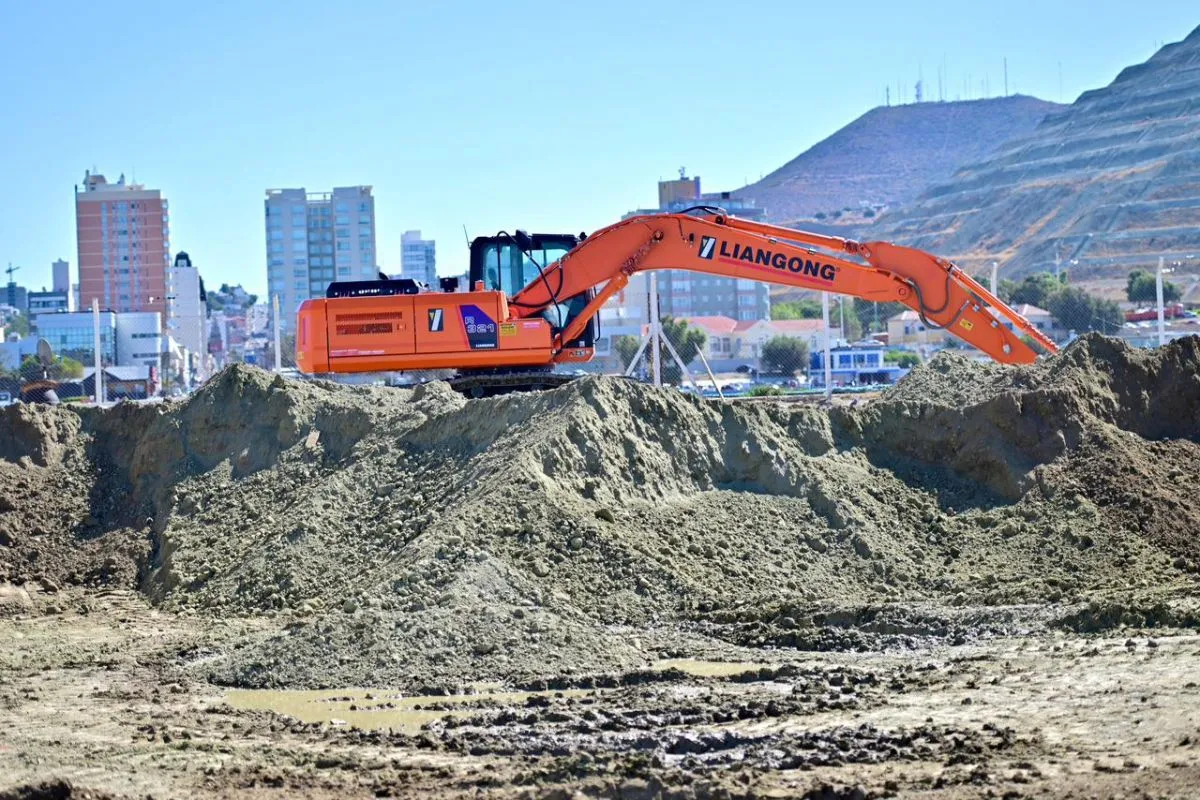 De manera paralela, continúa el movimiento de suelos en el sector donde se instalarán las nuevas vías de transferencia y gradas destinadas a la operación de buques con estándares modernos.