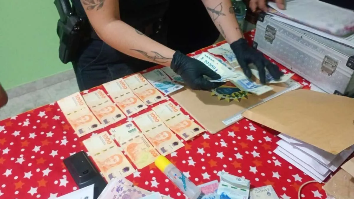 El resultado fue positivo. Se secuestraron $714.000 en efectivo, seis teléfonos celulares, prendas de vestir —entre ellas una campera Puma, un buzo negro y una remera negra con logo circular en la espalda— además de zapatillas, una base cargadora y una batería de equipo de comunicación HT.