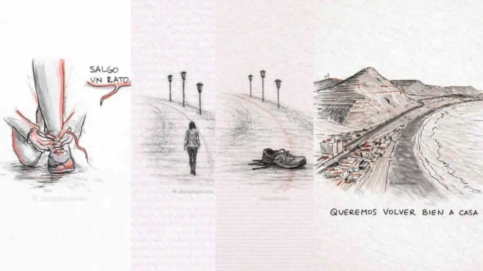 Una de las ilustraciones está basada en el recorrido que realizaba Valeria antes de su muerte en el paseo costero de la ciudad. En el dibujo se observa una secuencia que recrea la caminata y culmina con una zapatilla sobre el camino, un elemento que llamó la atención de muchos usuarios en redes.
