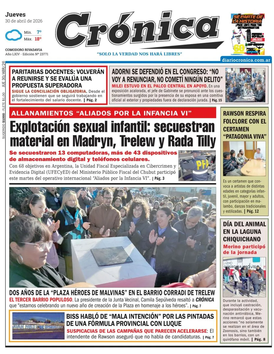 Nuestra tapa de la edición de Comodoro RivadaviaNuestra tapa de la edición del Valle