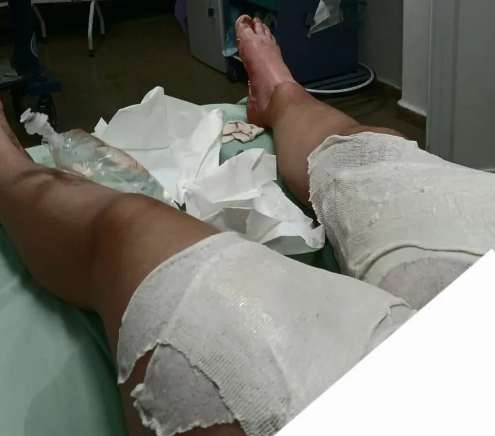 Según indicó, los médicos evalúan realizarle un injerto de piel debido a la gravedad de algunas lesiones.