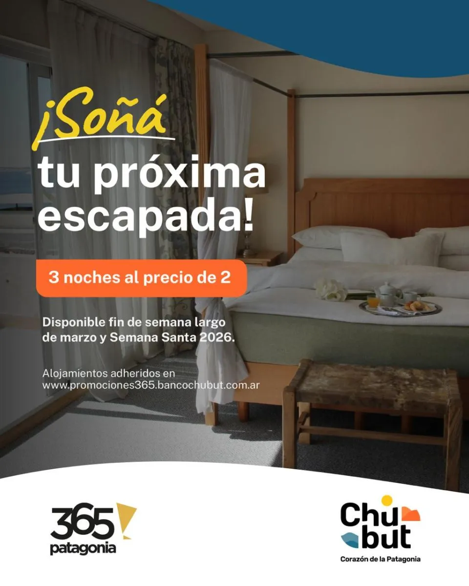 Con el objetivo de continuar fortaleciendo el movimiento de turistas y residentes, el Gobierno del Chubut lanzó el programa “Soñá tu próxima escapada: 3 noches al precio de 2”, una propuesta pensada para disfrutar al máximo los destinos y atractivos provinciales.