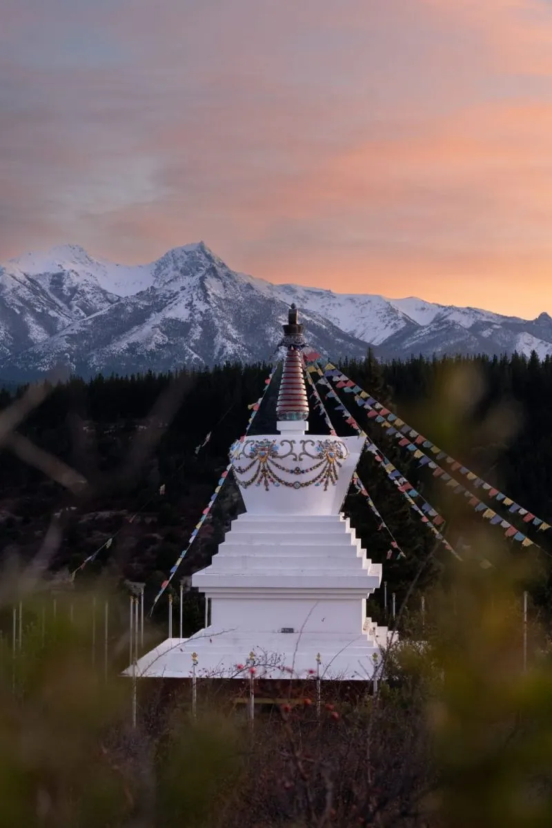 En la región cordillerana, la Stupa de Epuyén se presenta como un espacio de paz y contemplación en plena Comarca Andina, rodeada de bosques nativos y con vistas panorámicas, ideal para quienes buscan una experiencia espiritual y de conexión con la naturaleza.