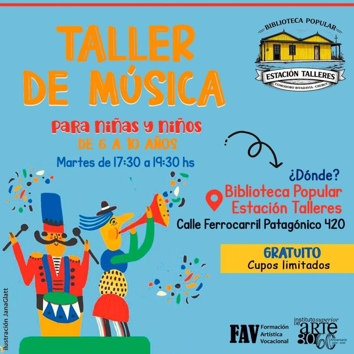 En colaboración con el Instituto Superior de Arte 806 (ISFD 806) y el programa de Formación Artística Vocacional (FAV), se dictarán talleres gratuitos de música y teatro de sombras.