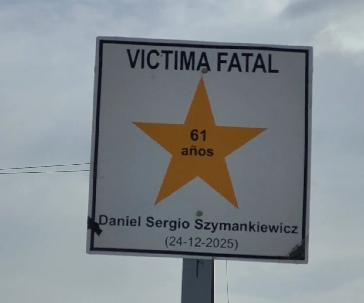 Posteriormente, a las 12 horas, en la Ruta 3, a la altura del ingreso al barrio René Favaloro, familiares y amigos de Sergio Daniel Szymankiewicz, de 61 años, quien falleció el 24 de diciembre de 2025, tras ser embestido por un automovilista cuando él circulaba en motocicleta, también pintaron su estrella, y se inauguró la cartelería. El hombre tenía un escaparate de diarios y revistas muy conocido en barrio 9 de Julio.
