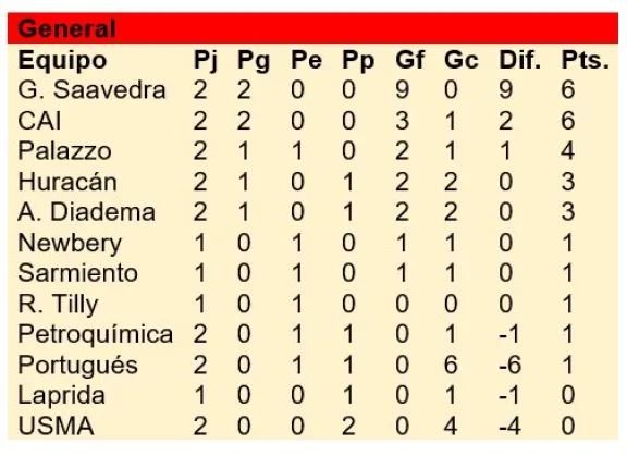 General Saavedra, que goleó, y CAI, que festejó en km 7, quedaron al tope de las posiciones de la Categoría A, al iniciarse la segunda fecha del Apertura que tendrá continuidad el martes y miércoles.
