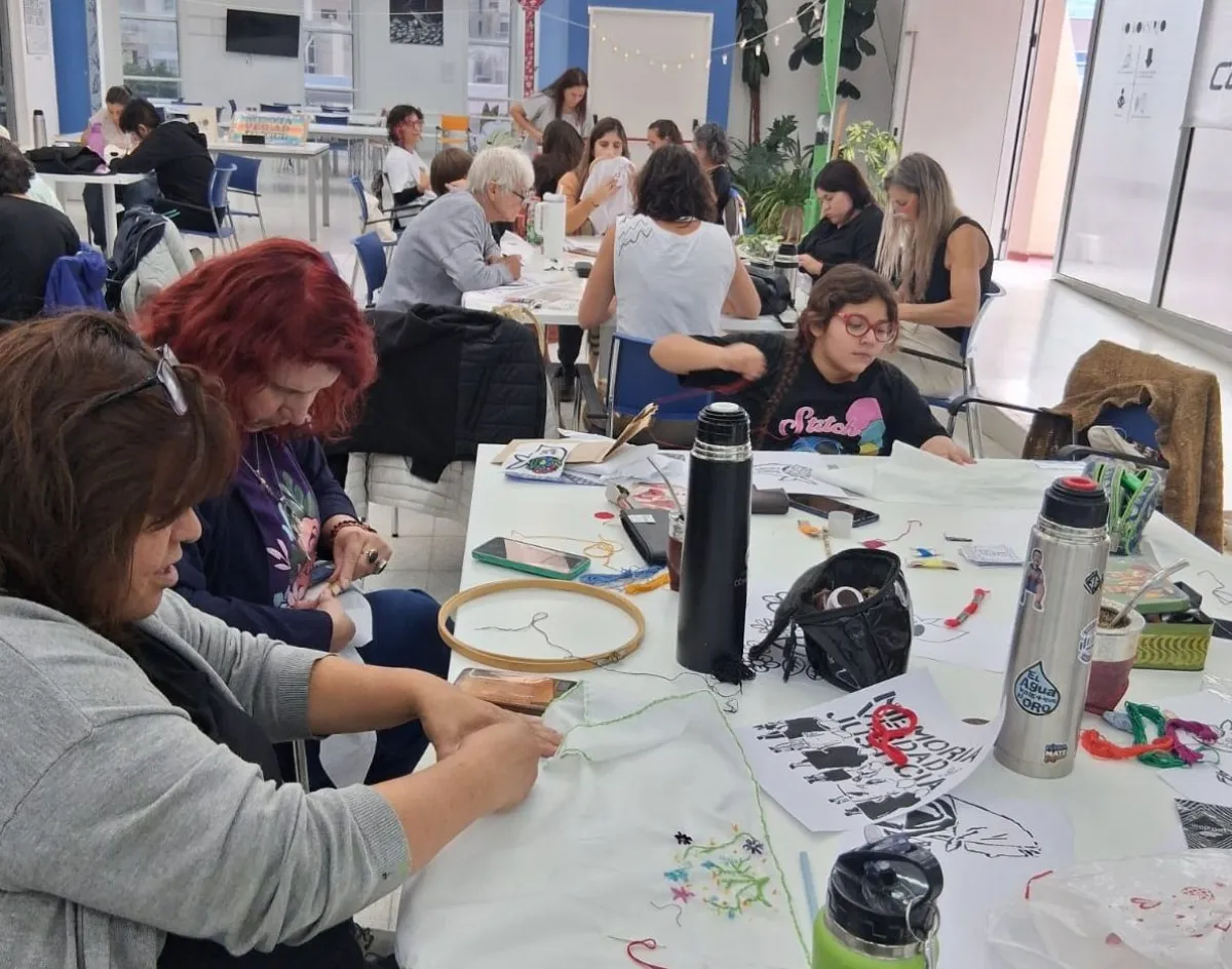 Los pañuelos bordados durante la jornada serán exhibidos en la marcha, como símbolo de memoria y lucha colectiva.