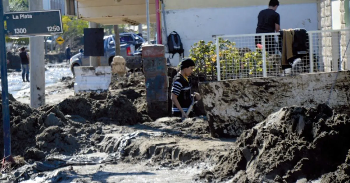 Autos arrastrados por la corriente, calles partidas por enormes zanjones y viviendas cubiertas por capas de barro comenzaron a multiplicarse en distintos puntos de la ciudad. En varios barrios, el agua bajaba con tanta fuerza que se llevaba todo a su paso.