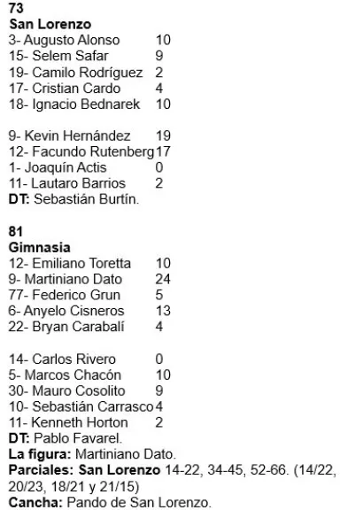 Gimnasia terminó haciendo un buen primer tiempo y lo gana 45 a 34. Corrigiendo y siendo más regular en los últimos minutos del segundo cuarto, supera con claridad a San Lorenzo y se ilusiona con el noveno triunfo en fila.
