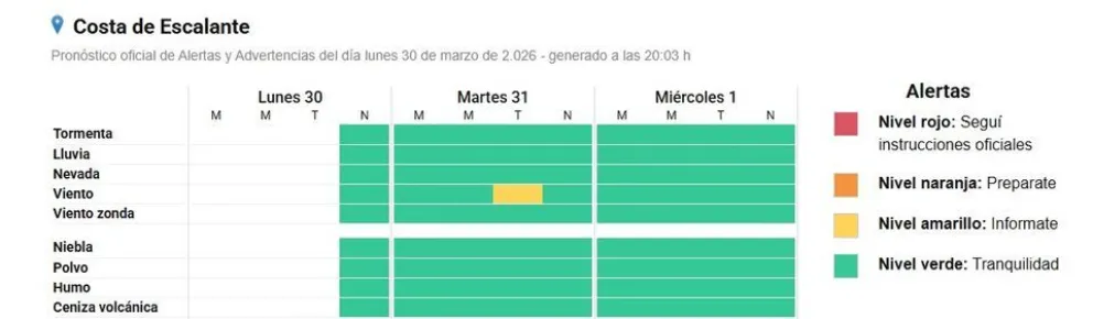 El informe oficial indica que el fenómeno climático estará marcado por vientos del sector noroeste.