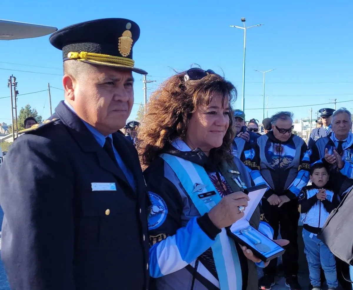 “Yo también soy veterana, fui radio operadora en la Región Aérea Sur. A todos nos dieron medallas, pero la de él es la que llevo con más orgullo. El amor, el respeto y el valor están acá”, concluyó.