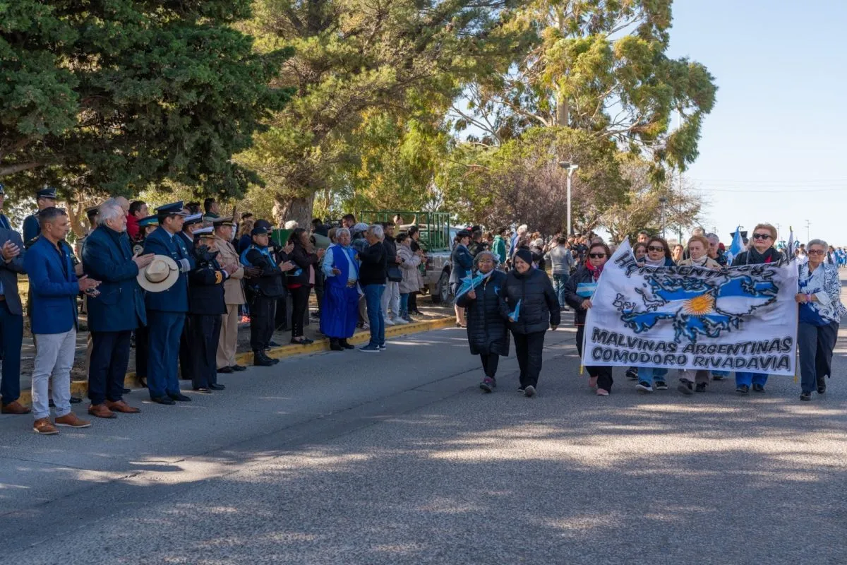 En el marco del 44° aniversario del Día del Veterano y de los Caídos en la Guerra de Malvinas, el intendente de Comodoro Rivadavia, Othar Macharashvili, encabezó este miércoles un conmovedor acto homenaje en el barrio Rodríguez Peña, que reunió a referentes de la comunidad, en un espacio donde se puso en valor el sentimiento de pertenencia y la memoria histórica del pueblo argentino. Como es habitual para el cierre, se realizó un desfile cívico militar, que incluyó a instituciones del barrio, Centros de Veteranos, escuelas y Fuerzas Armadas.