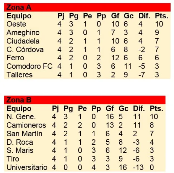 Con los resultados que se registraron este sábado, Oeste en la zona A y Nueva Generación en la B, quedaron como únicos líderes al completarse la fecha 4 del ascenso.