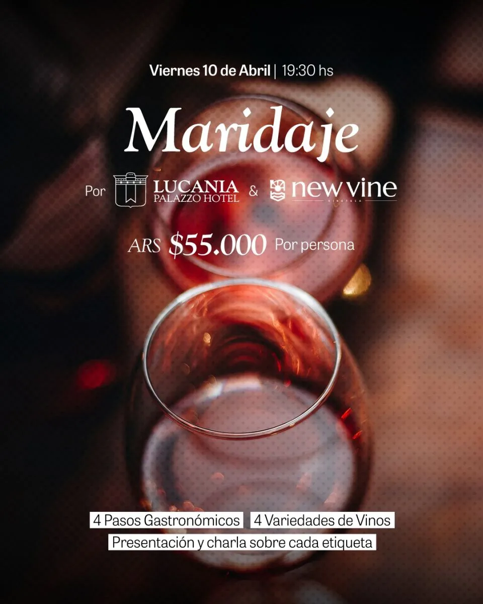 El viernes 10 de abril a las 19:30, el Lucania Palazzo Hotel será escenario de una nueva velada dedicada al mundo del vino. Bajo el formato de maridaje, la propuesta invita a recorrer sabores y aromas en una experiencia que busca ir más allá de una simple cena.