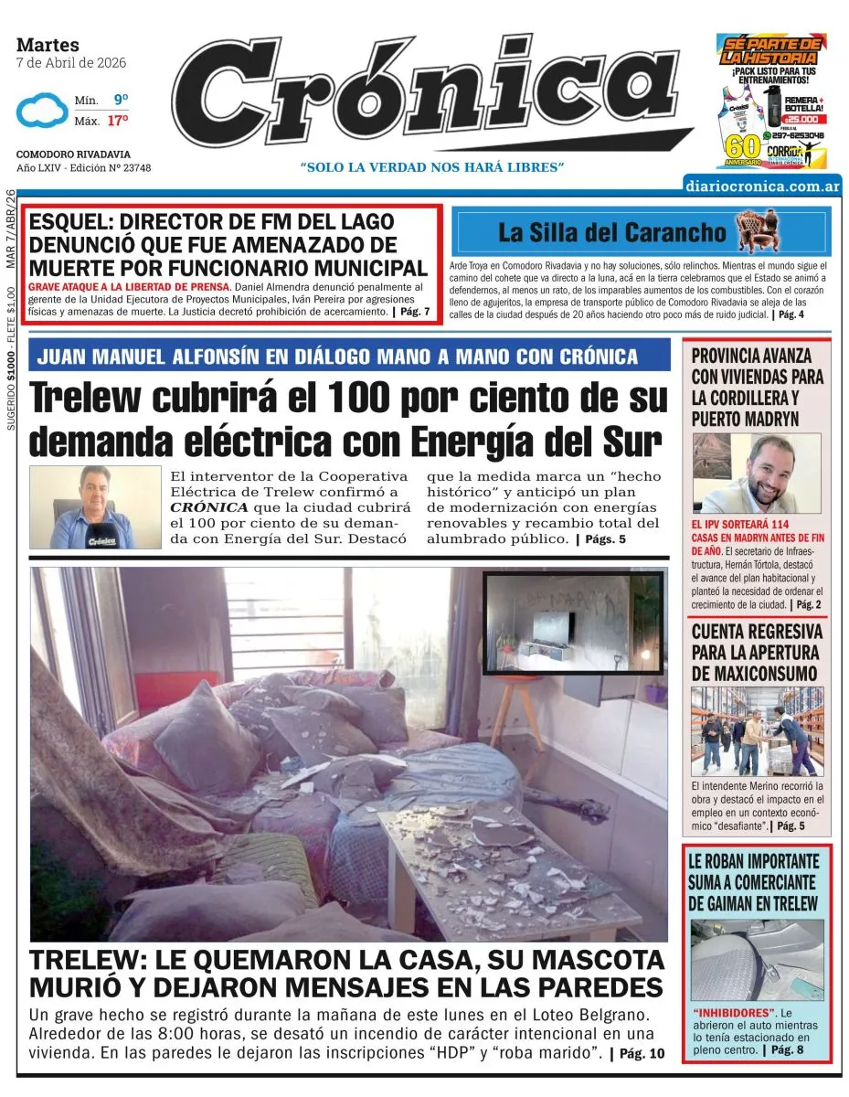 Nuestra tapa de la edición de Comodoro Rivadavia