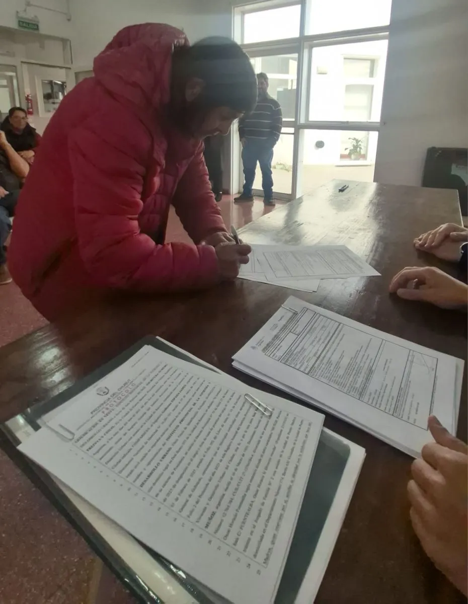 El acto de firma de las primeras escrituras se realizó este martes por la mañana en el Núcleo Integral de Desarrollo de Oportunidades (NIDO), en el barrio Ruca Hue de la ciudad del Golfo Nuevo, y de la actividad participaron el presidente del IPV, Guillermo Espada James; el escribano del organismo provincial, Ignacio Lleral; el presidente del barrio Luis Calfuman; además de vecinos y autoridades de la Delegación del Instituto en Puerto Madryn.