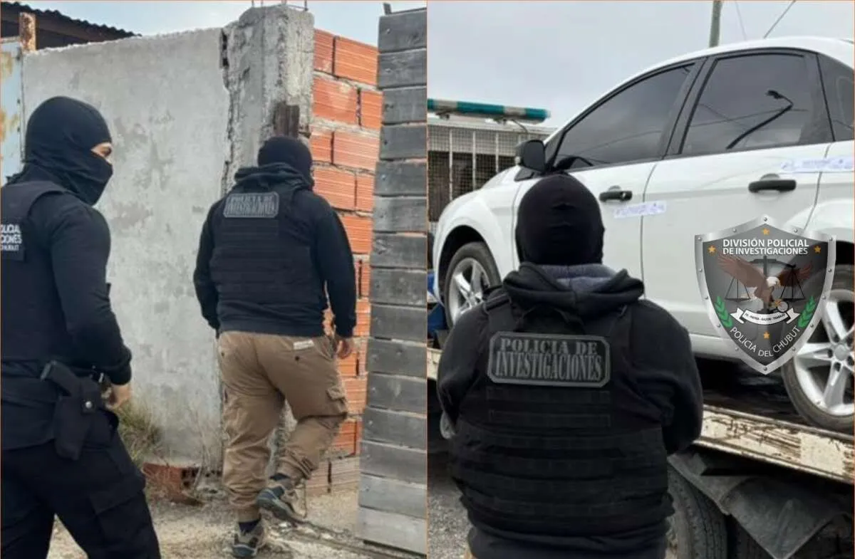 También fue incautado un vehículo Ford Focus blanco, señalado como el rodado utilizado por los sospechosos para movilizarse entre Rawson y Puerto Madryn mientras cometían las maniobras.