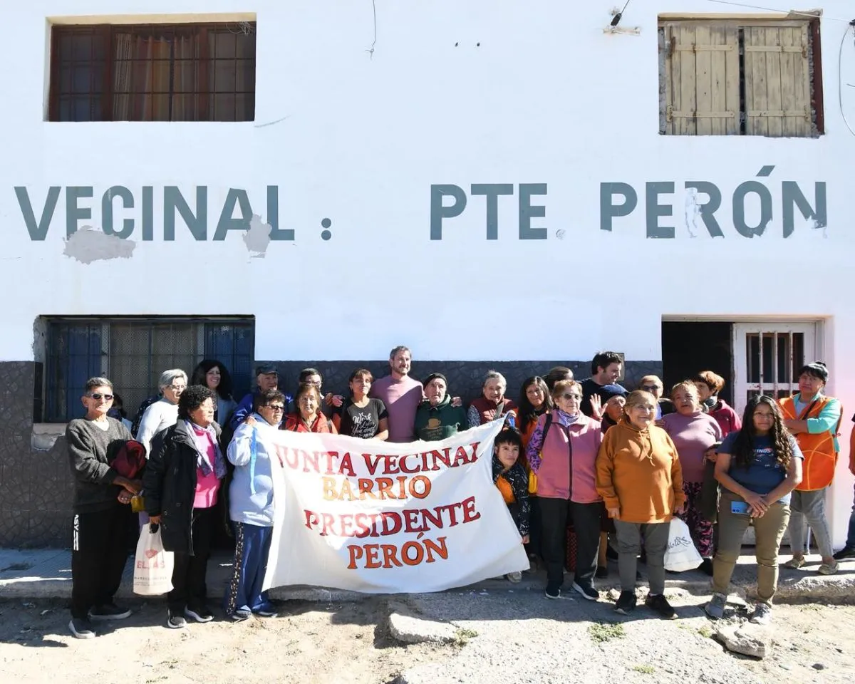 El intendente de Trelew, Gerardo Merino, y el gobernador de Chubut, Ignacio Torres, participaron de un encuentro comunitario junto a adultos mayores y vecinos del barrio Presidente Perón, desarrollado en el salón de la sede vecinal, donde compartieron un momento distendido con los presentes.