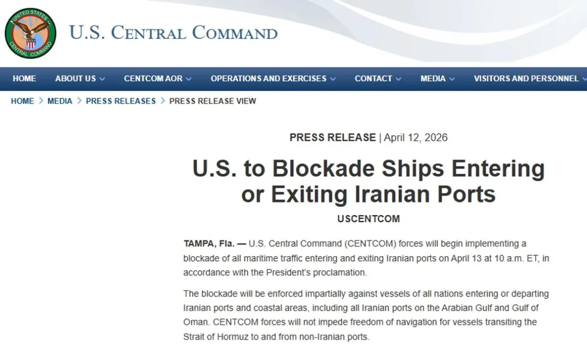 Según el comunicado oficial, el operativo alcanzará a todo el tráfico marítimo que entre o salga de puertos iraníes, tanto en el golfo Pérsico como en el golfo de Omán.