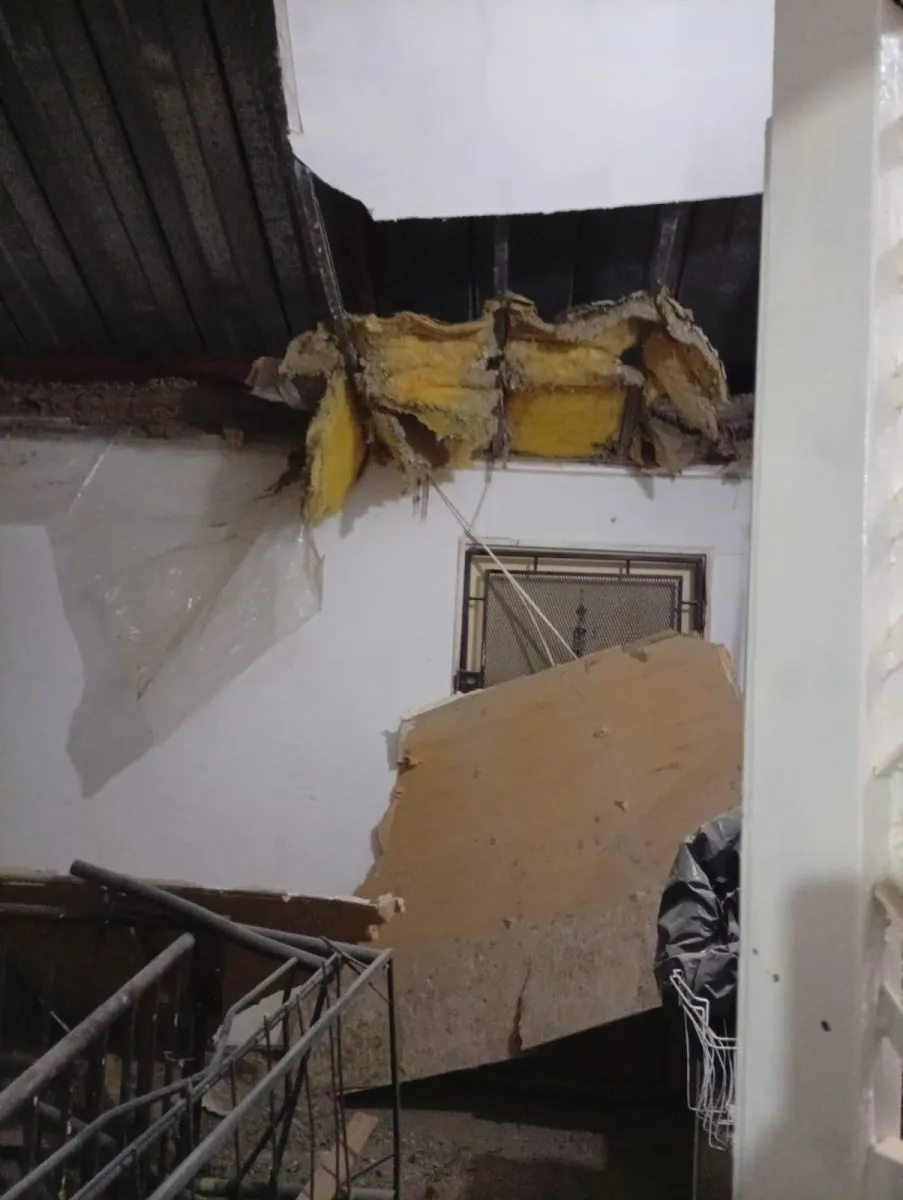 Se cayó el techo de otro edificio en las 1008 Viviendas