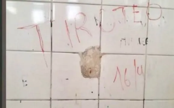 En la escuela 762 “René Favaloro” ocurrió exactamente lo mismo, en la zona de los baños se encontró una pintada sobre una pared, la misma fue borrada pero antes los directivos del establecimiento le sacaron unas fotos que enviaron a la policía.