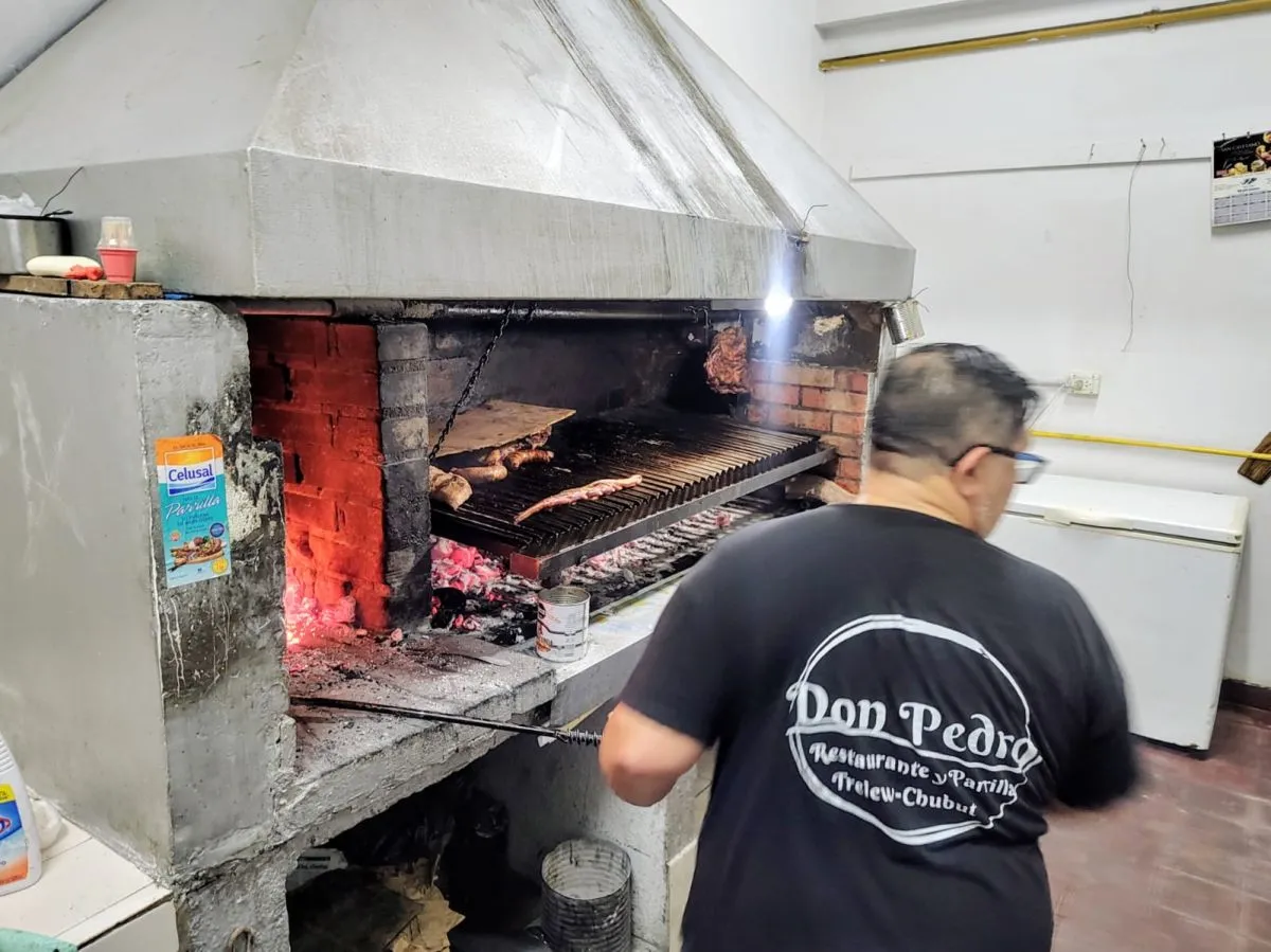 El primer parrillero de la historia de Trelew de carne de burro, Edgardo Carrasco, este jueves a la noche fue muy cuidadoso en cocinar el primer asado de burro en un restaurante, que muchos vecinos, autoridades y emprendedores degustaron en la parrilla y restaurante "Don Pedro" de Trelew.