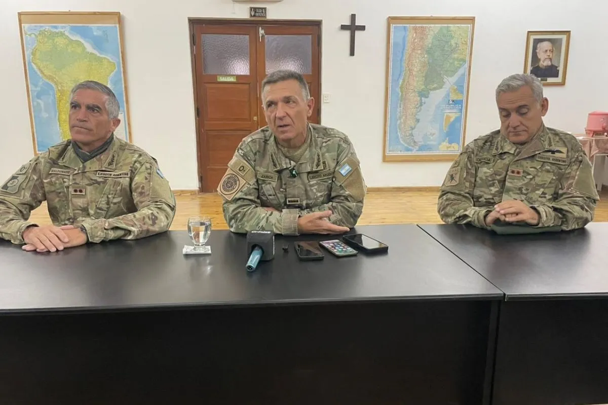 El General Oscar Santiago Zarich, Jefe del Estado Mayor General del Ejército, brindó detalles desde Comodoro Rivadavia junto al General de Brigada Darío Ochoa (Comandante de Alistamiento) y el General de Brigada Eduardo Maldonado (Comandante de la División Ejército 3).