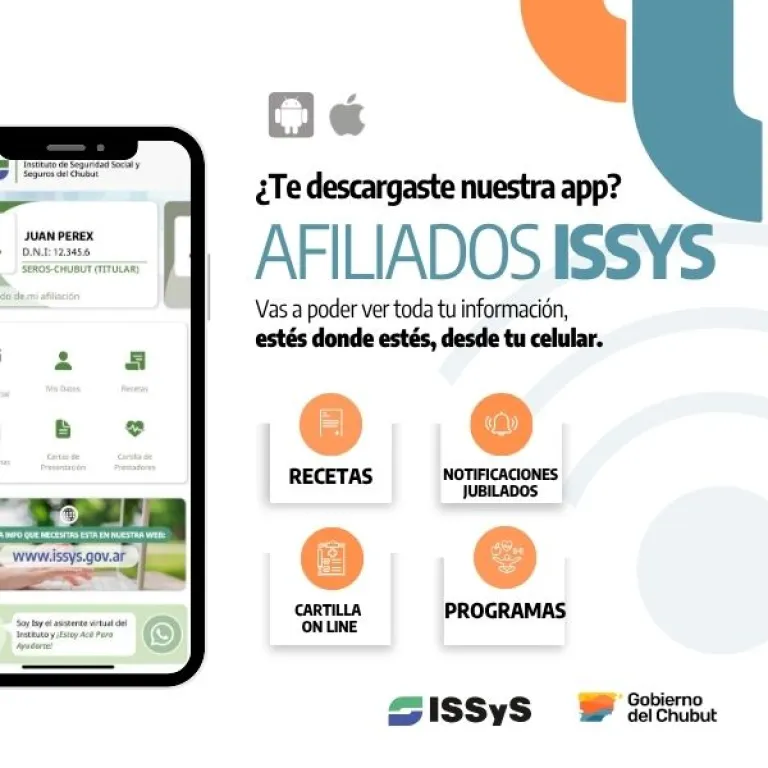 El Instituto de Seguridad Social y Seguros, a través de SEROS Chubut, recuerda la disponibilidad de la aplicación móvil Afiliados ISSyS, una herramienta diseñada para simplificar gestiones, brindar mayor comodidad y facilitar el acceso a información clave desde cualquier lugar de la provincia.