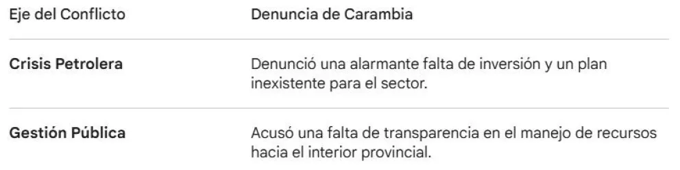 Carambia, referente del partido Moveré, no se guardó nada en sus declaraciones. Calificó a la administración de Vidal como un gobierno de "improvisación constante" y denunció la existencia de "amiguismos sindicales" dentro de la estructura estatal.